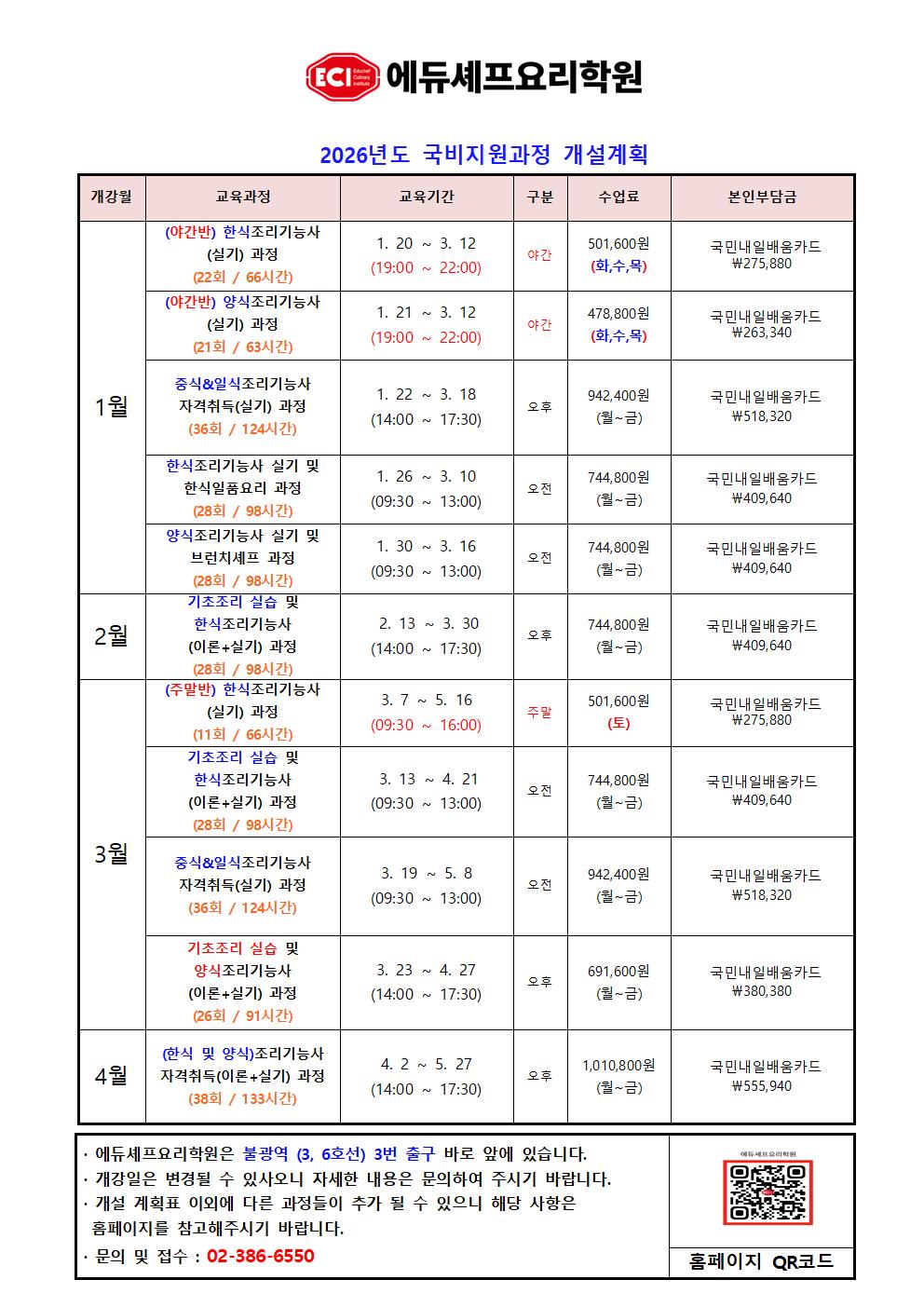 ●수업기간 26년 1월 26일~ 3월 10일수업시간 : 09:30 ~ 13:00(월~금)